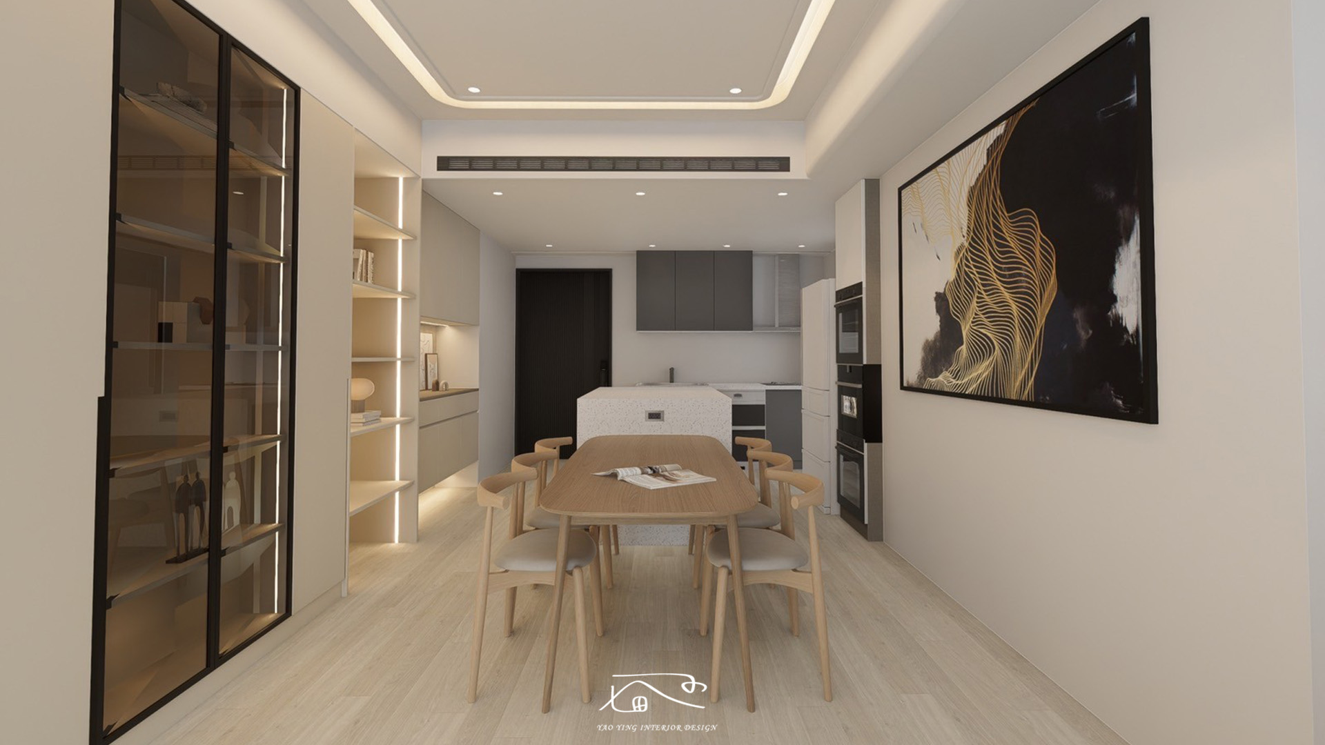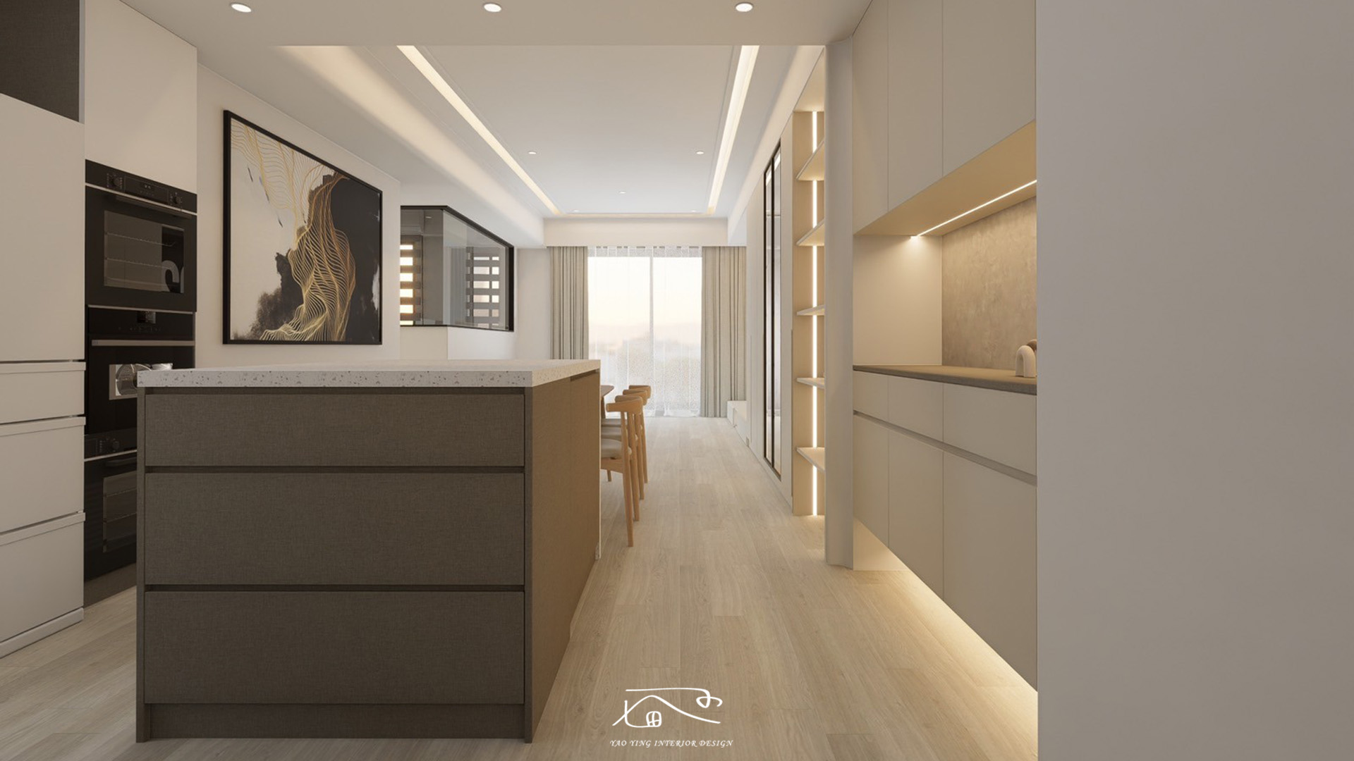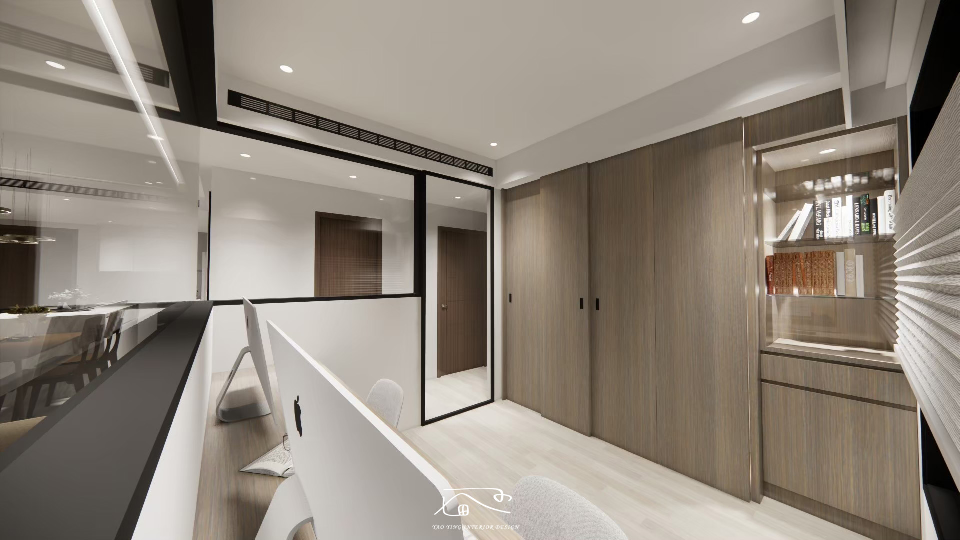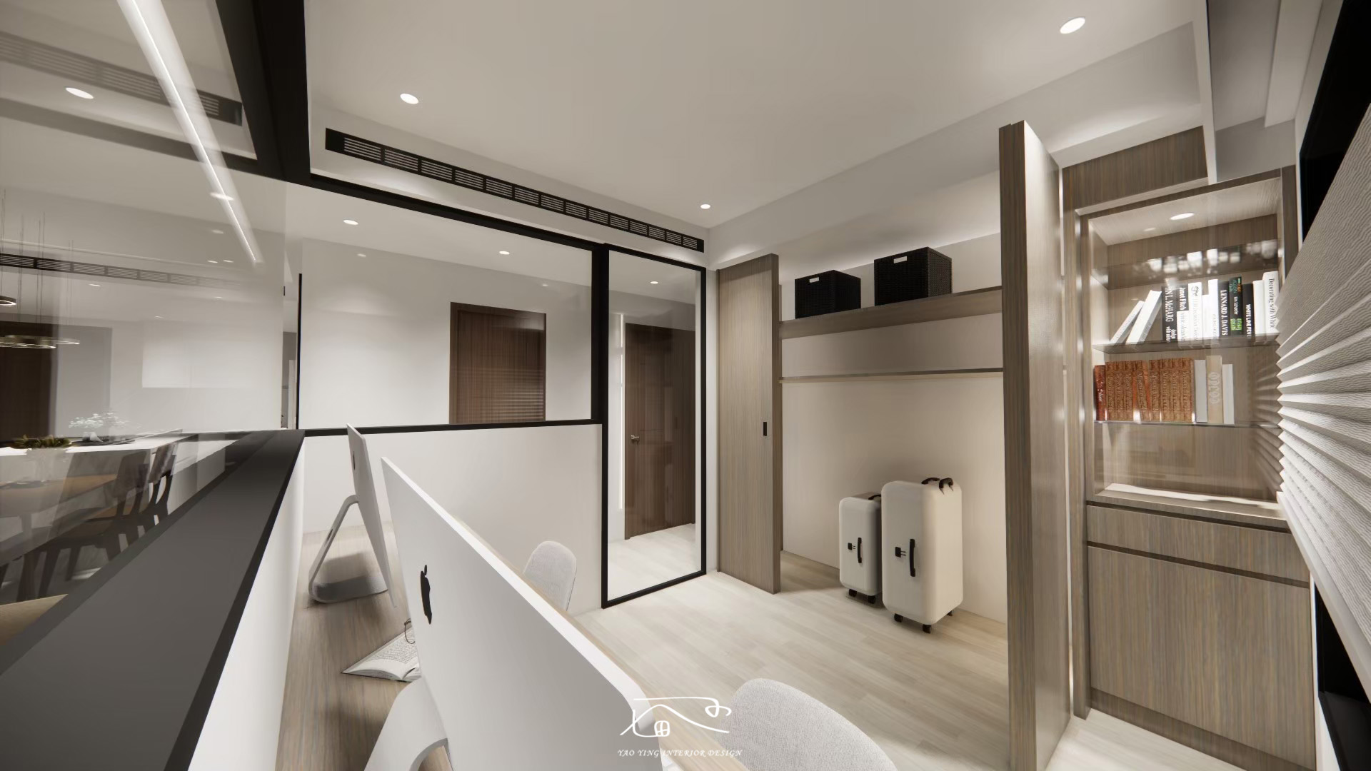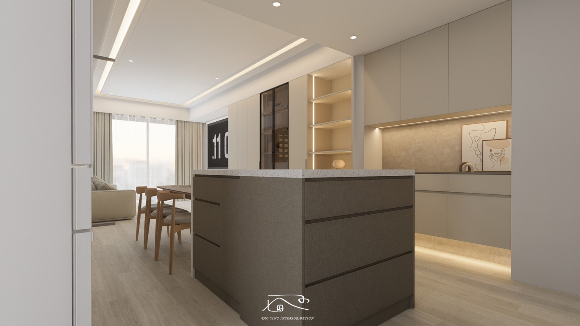 此次設計結合美感與實用性,透過通透的玻璃元素與靈活的收納設計,滿足屋主的個性化需求,打造了一個兼具時尚與機能的理想居家空間。