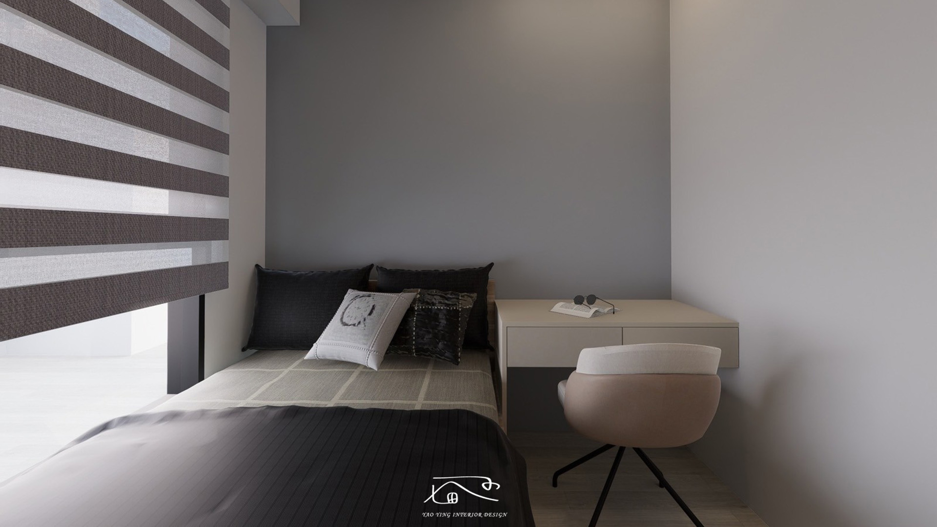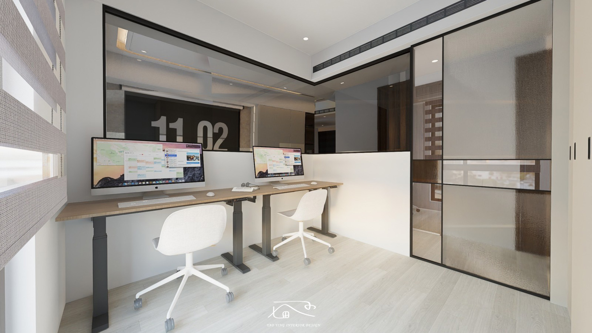 在沙發背牆後的空間設定為書房,將原隔間牆改為半矮牆結合玻璃,提升整體空間的通透感;既保有辦公時的獨立性,也能兼顧家庭互動需求。