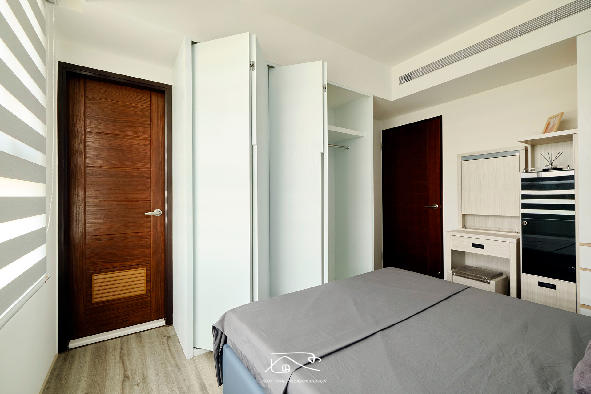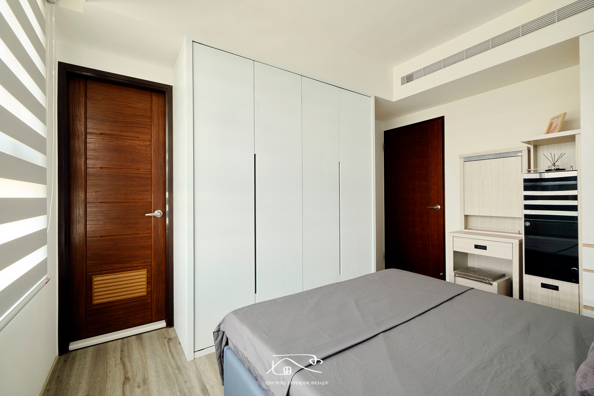 因為屋主喜歡把衣服直接掛起來,所以我們在衣架的承重設計上格外用心,讓屋主夫妻倆掛再多衣服也不用擔心。整排衣服整齊排開,一目了然,想穿哪件輕鬆就能拿取。有時太太在衣櫃前挑衣服,先生就在一旁給意見,邊聊邊笑,讓每天換衣服的時光,都成為生活裡的小小樂趣。