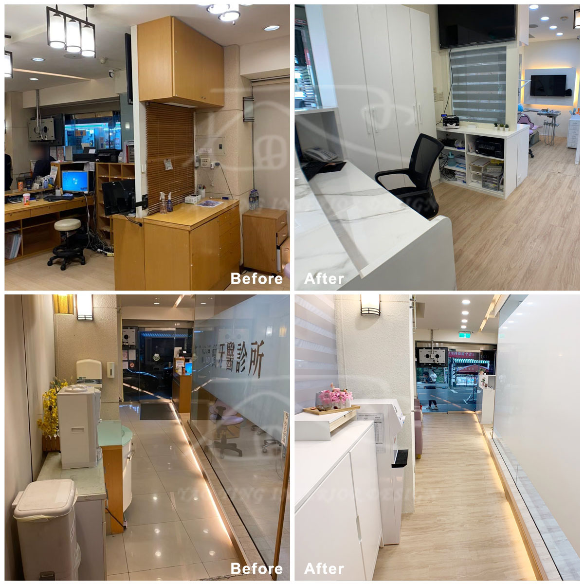 位於新店區的吉安牙醫診所,以原有格局翻新,從整體顏色作調整,即可讓整體空間明亮度明顯的提升,地版全室整新有煥然一新的感覺,也在原有的診療區新增了隔間牆,讓獨立手術室更有隱私空間。