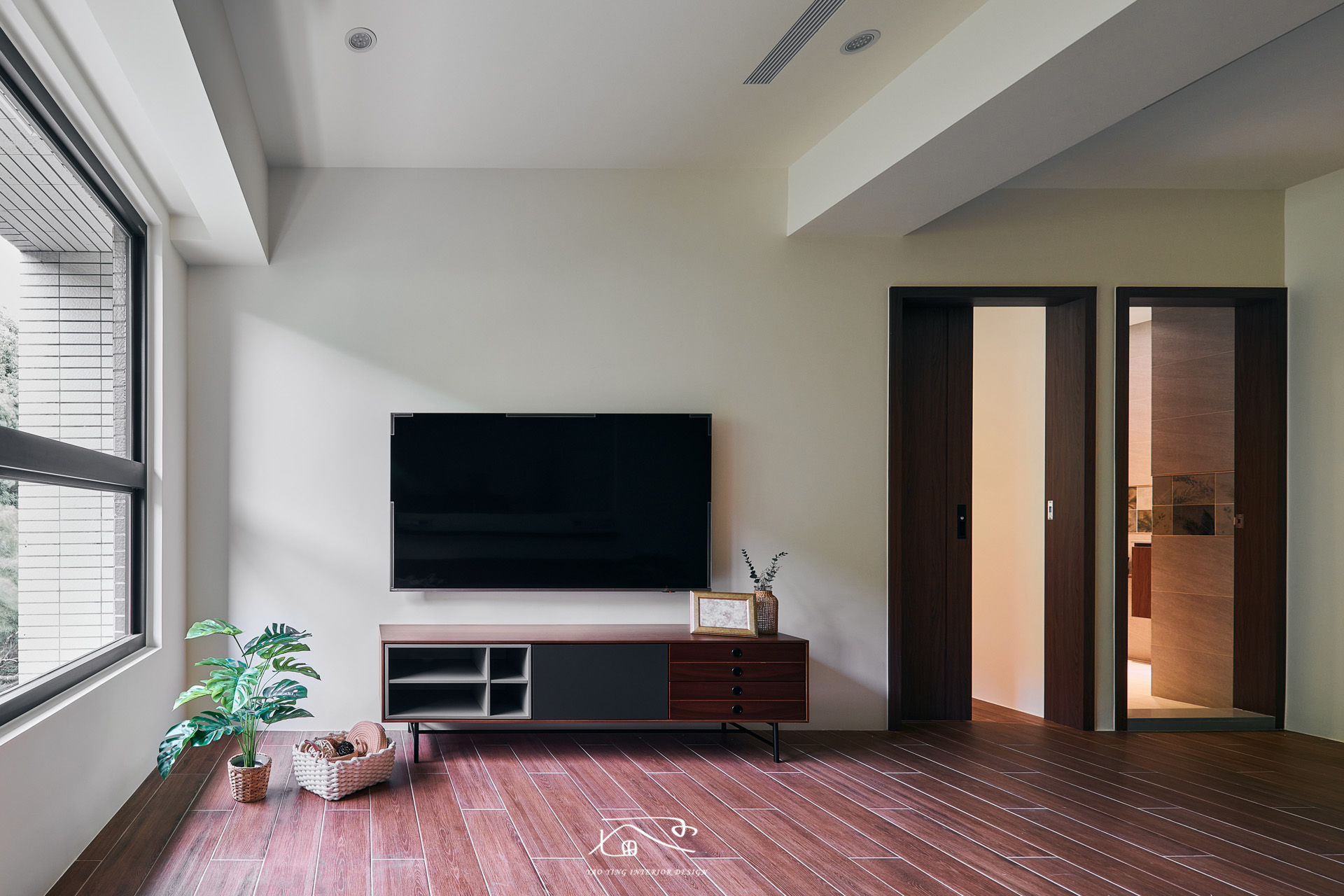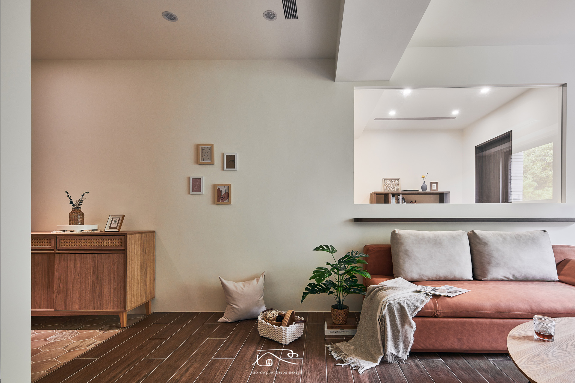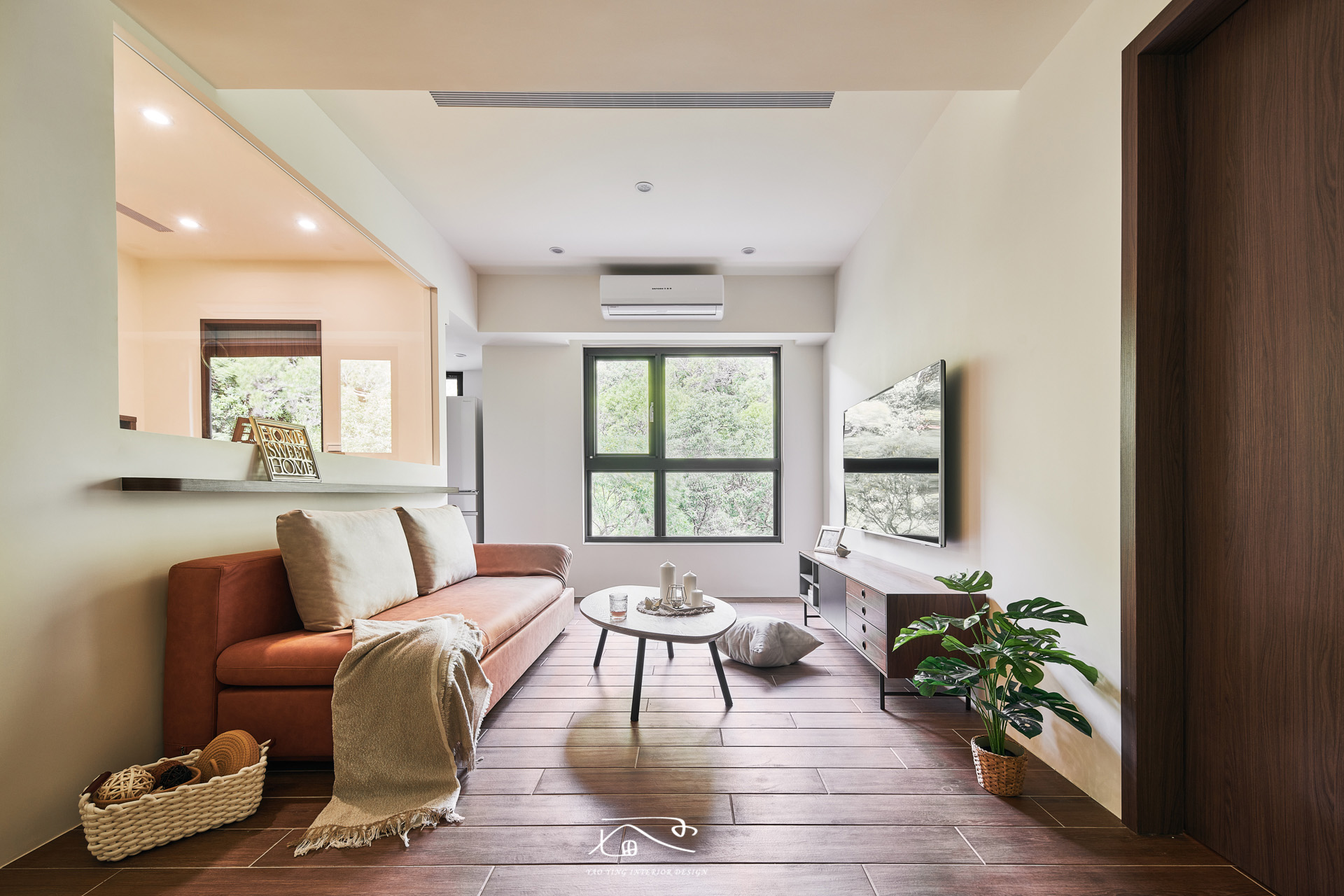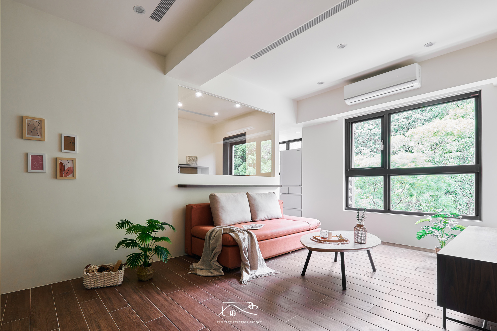 建案本身優勢窗戶看出去式一片樹林,視野、採光非常好,我們保留原有採光,也將屋主需要的工作間採用玻璃的設計,確保每個空間都能有足夠的採光。