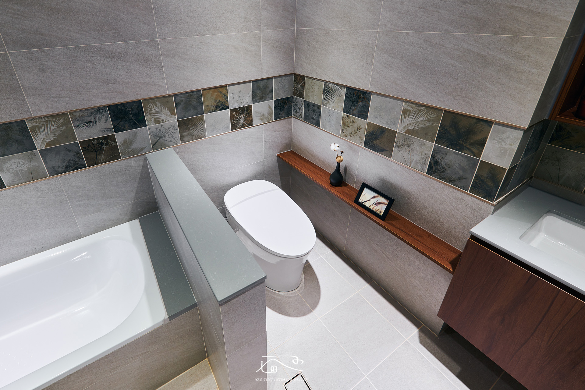 我們將浴室原有格局推翻從新設計,讓整體空間更明亮、寬敞,動線也更為順暢,同時也滿組了女屋主的浴缸夢想!!值得一提的是浴室的中段花磚可是與屋主一片一片排出來的喔!非常的漂亮呢!